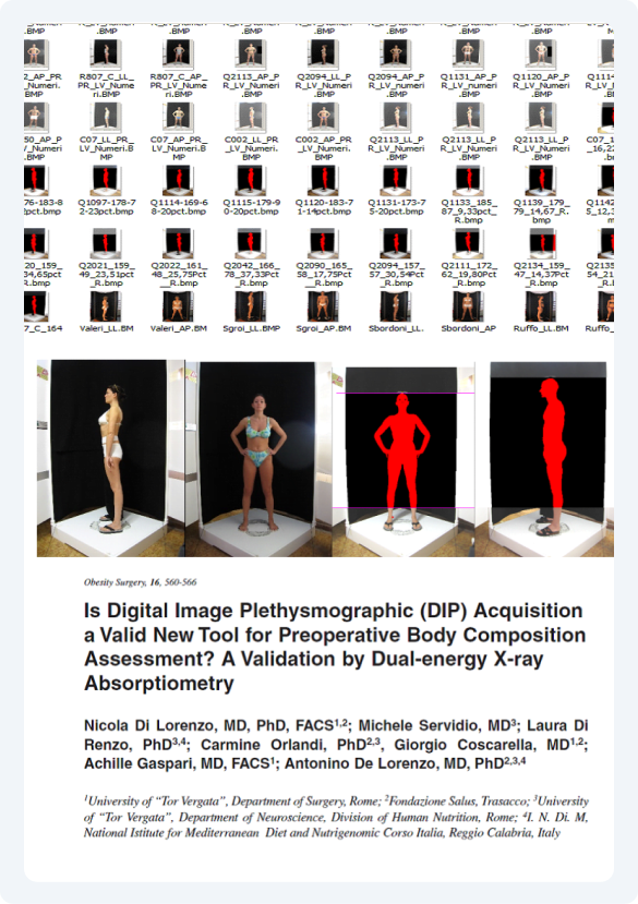 In collaboration with local Institutes such as Dr. A. Polito (INRAN -Rome), Dr. N. Di Lorenzo (University of Tor Vergata-Rome), and Dr. Jordan Moon (University of Oklahoma), we conducted a multiple-site study to validate this novel digital image body volume estimating approach.